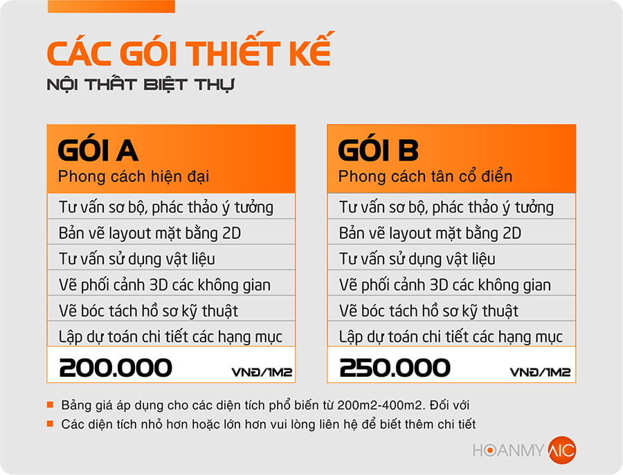 Chi tiết gói thiết kế nội thất biệt thự tại HoanmyAic