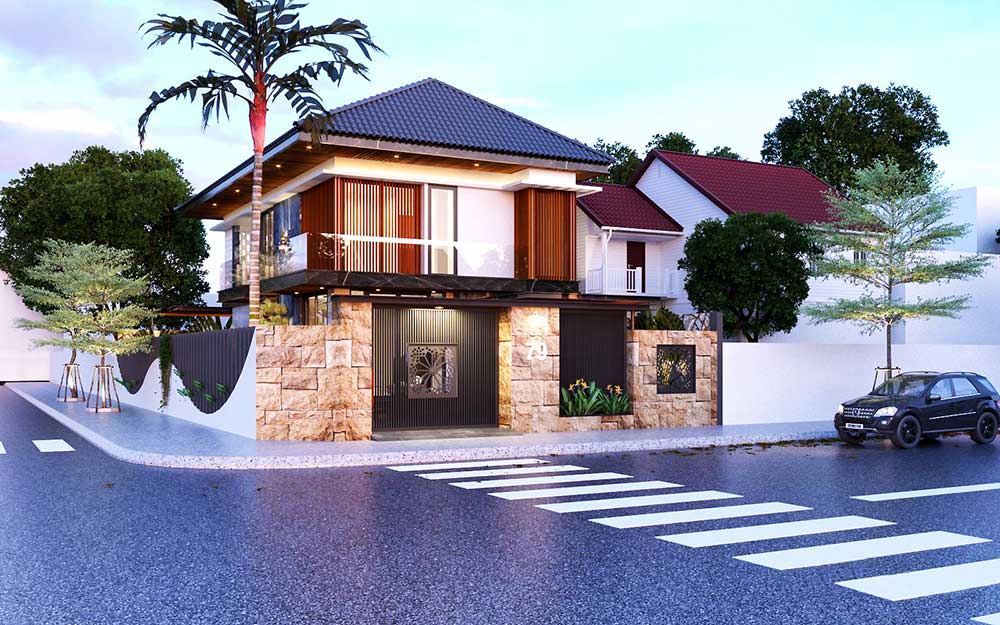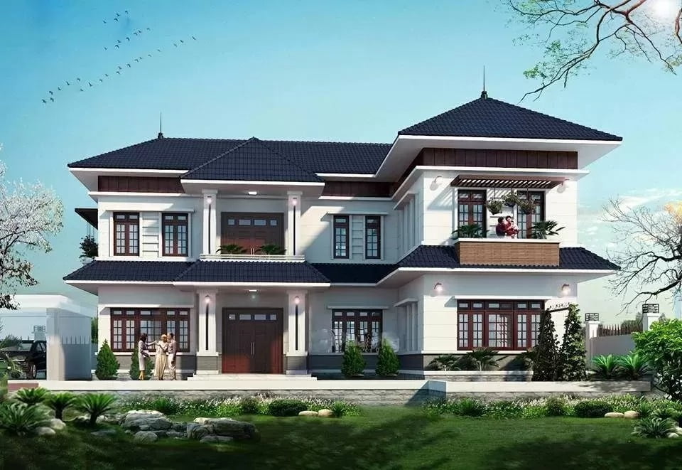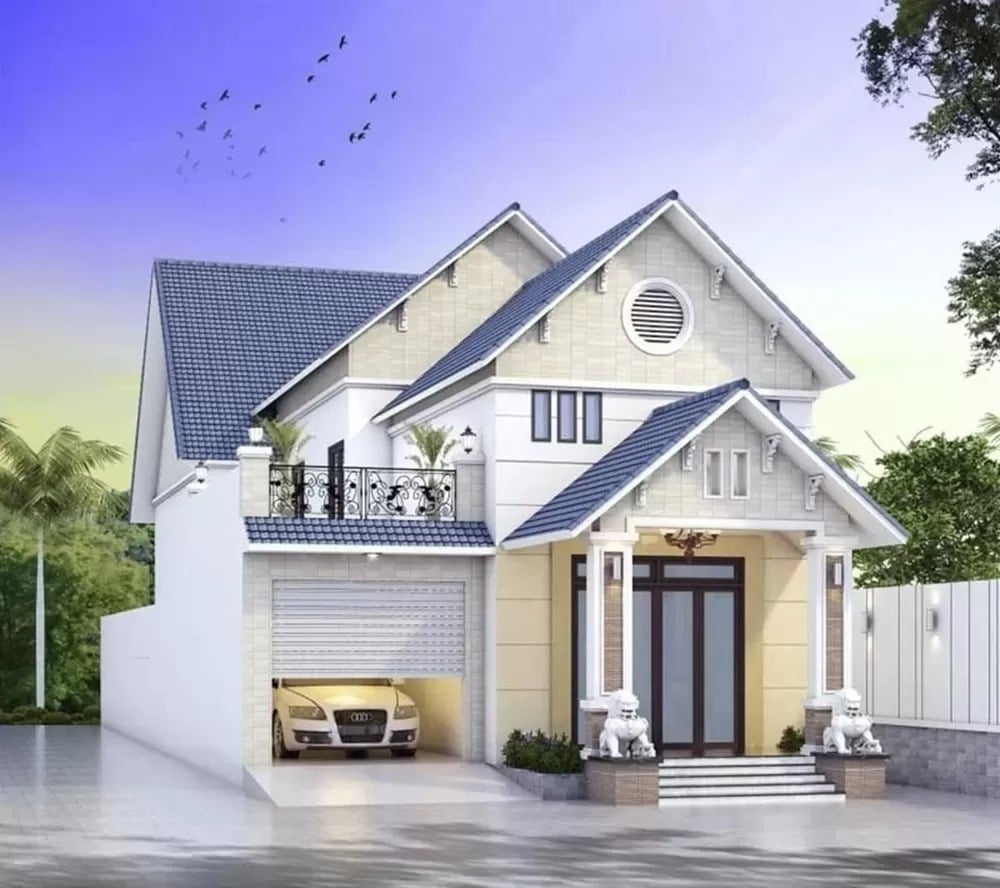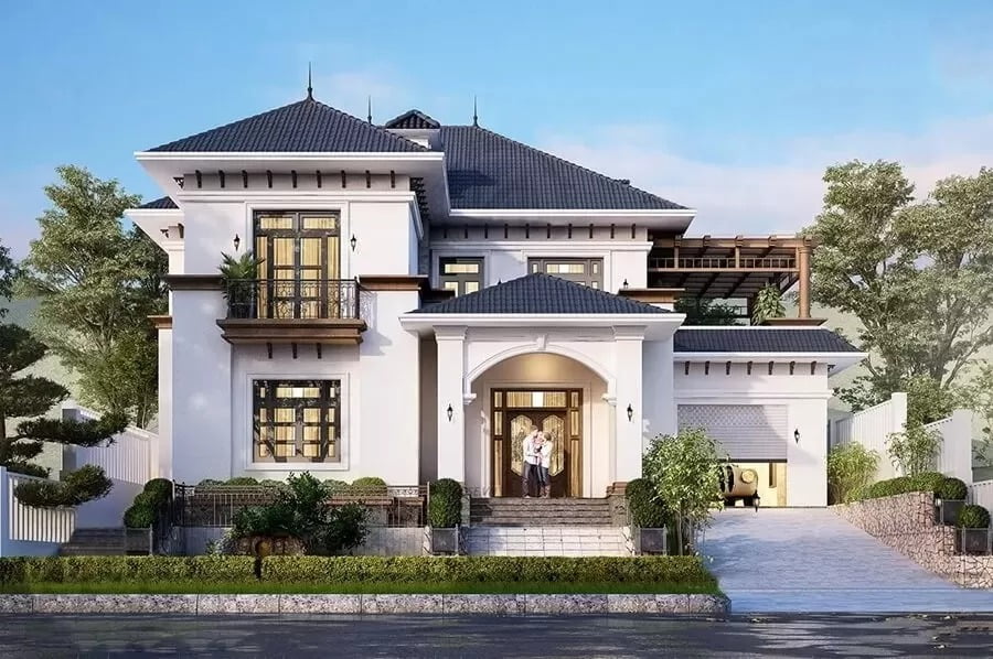 Thiết kế biệt thự sân vườn mái thái 2 tầng Bắc Ninh